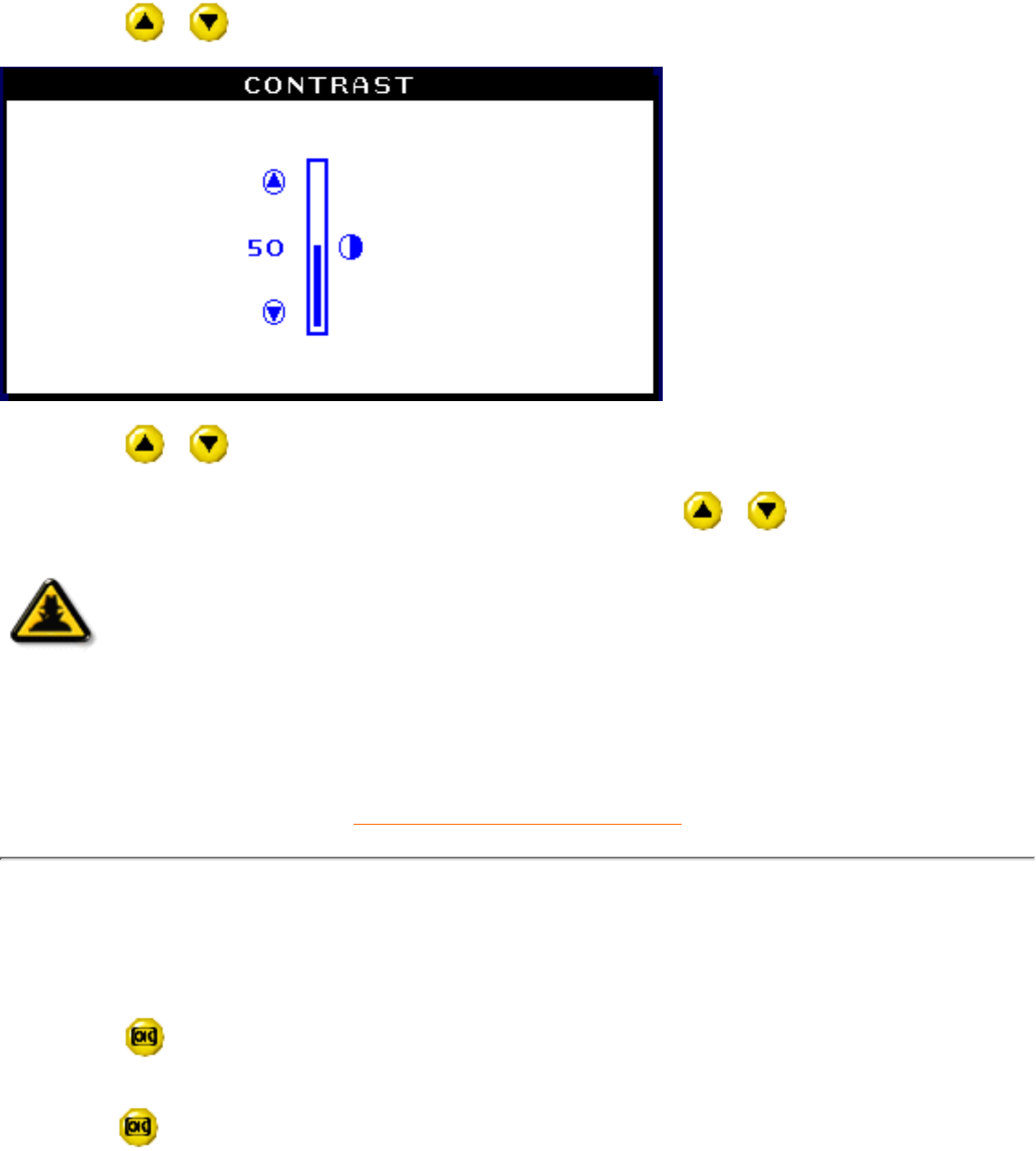 1) Press the or button on the monitor. The CONTRAST window appears.