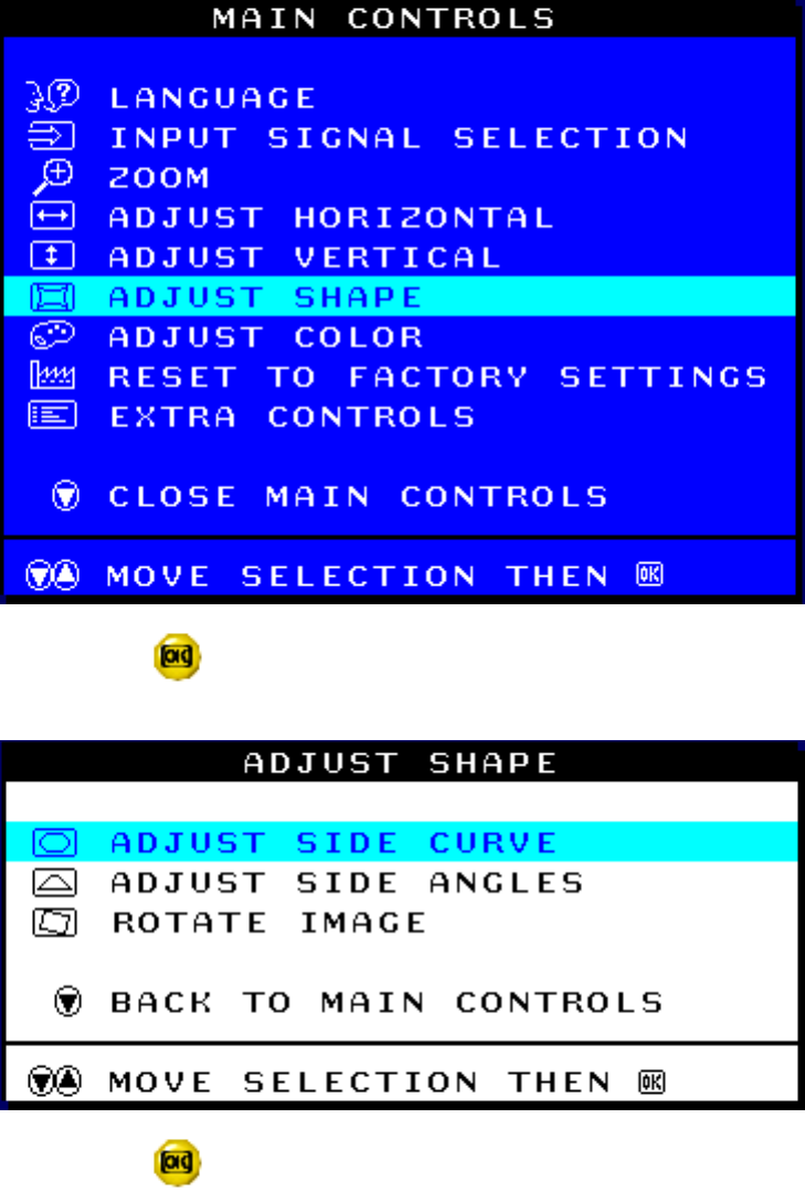 3) Press the button. The ADJUST SHAPE window appears. ADJUST SIDE CURVE should be
