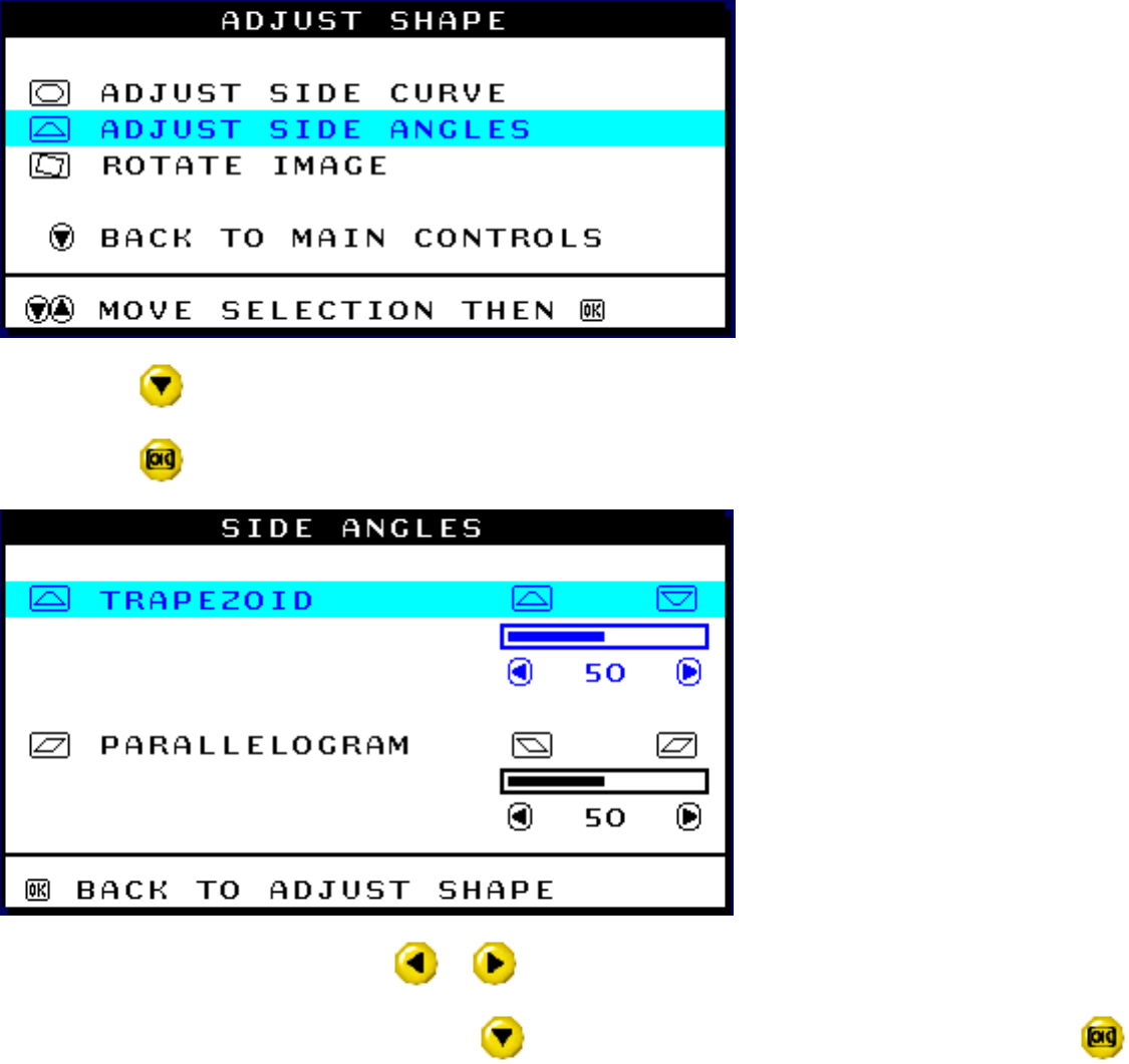 4) Press the button to highlight ADJUST SIDE ANGLES.