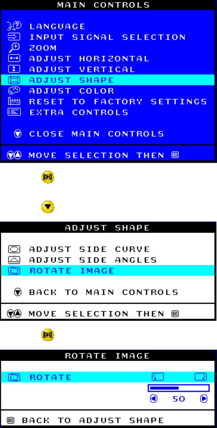 5) Press the button. The ROTATE IMAGE window appears. ROTATE should be highlighted.